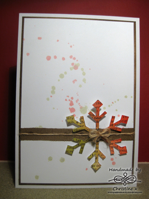 I added a brown ribbon then some twine. There is a heart-shaped button in the centre of the snowflake but you can’t see it in the photo due to the bow.