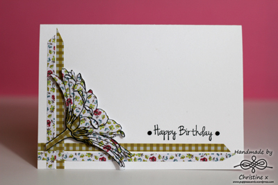 1. What a fabulous idea to print the Gerbera on patterned paper! A very clean and simple card that is very effective. Love the touch of gingham too! It almost looks like material on your card. Laura xx