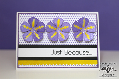 1. HI Christine – I think you card is fabulous and I LOVE how you picked three elements to use as the inspiration for your!! I especially love the purple and am also a big fan of polka dots! Thanks so much for playing in the challenge and for creating such a wonderful card!!