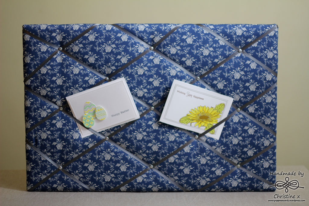 I did want to put out a post though so I thought I would share my first real piece of homemade décor – a French ribbon board to hang in my craft room to pin cards and inspiration pieces.