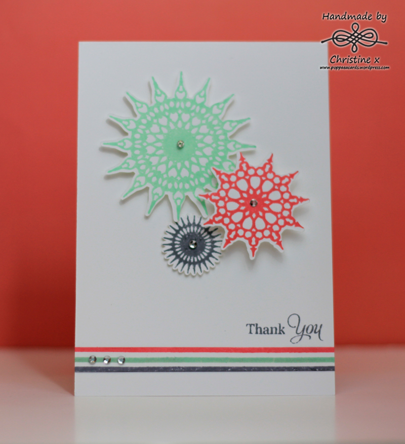 I have had the beautiful Deightful Doilies stamp set from Uniko for a while now but just haven’t had enough time to play. I was determined to make use of it for this challenge but when I sat down to craft my mind went blank. I played around for a while to no avail so started to look at some other challenges to inspire me and the CTD colours jumped out at me.