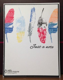 I was drawn to the vertical nature of the focal image, the jagged edges of the feathers and the use of multiple colours.
