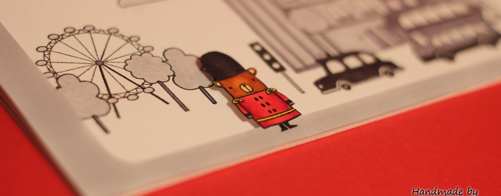 I have a card for the My Favourite Things sketch challenge, a new challenge to me. My lovely husband (yes, I know I keep saying it, but he really is) bought me lots of crafty goodies for my birthday, one of which was the London Mouse stamp set from MFT which is just so adorable that I needed to break it out of it’s packaging straight away!
