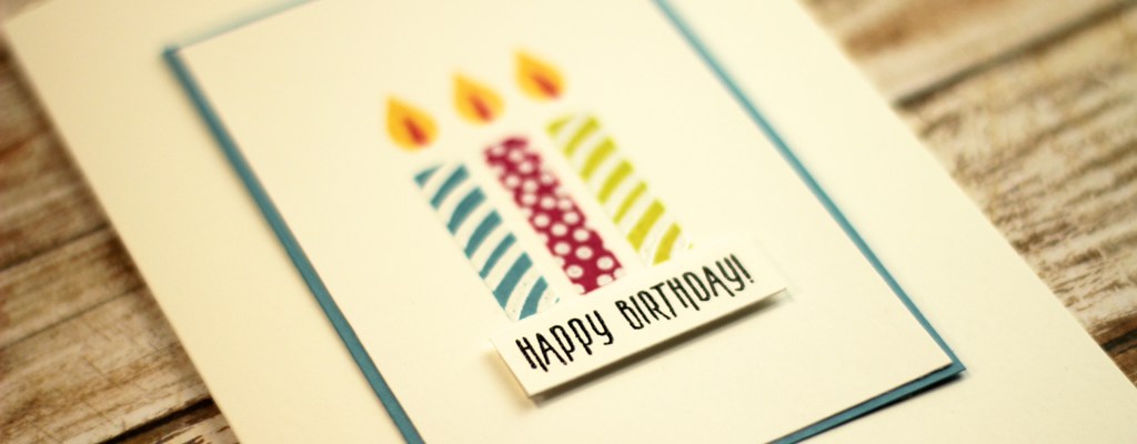 I have used the Picture Perfect Birthday stamp set from Stampin’ Up! which will be available for purchase in January with the Occasions Catalogue. I simply stamped the candles centrally on the mat layer, then heat embossed the patterns in white to make the image pop. The sentiment is from the same set, stamped onto a piece of card and raised up on dimensionals.